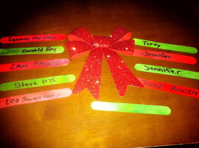 ,we took the concept of the Memory Jar with Stones and adapted it to the season and used green and red sticks to allow the participants to write the names of their loved ones one them. Walking through the crowd, we took the time to allow moments for them to share stories of their loved ones and how they are coping. The stories of unconditional love and devotion were amazing.